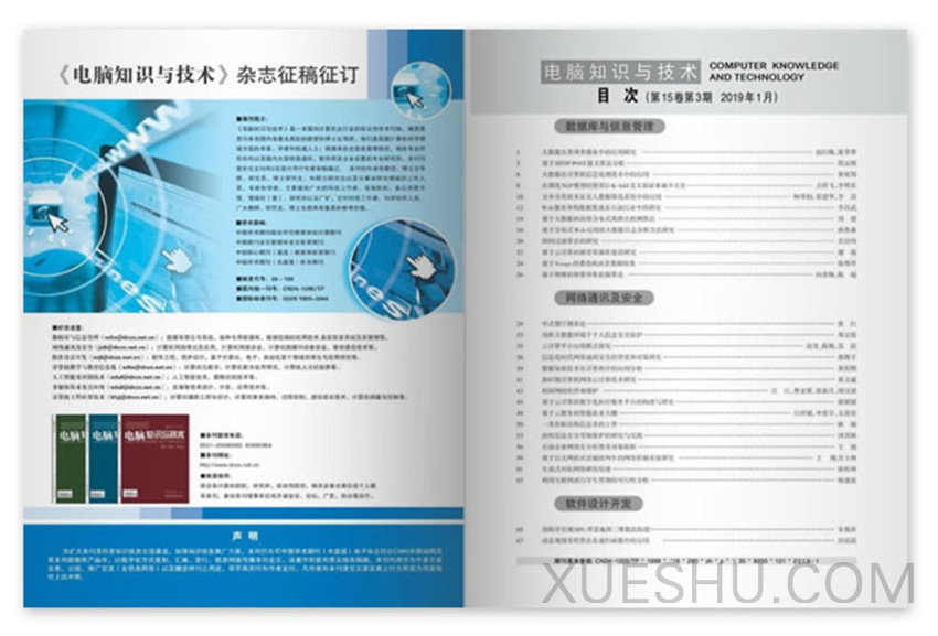《电脑知识与技术》(月刊)经过多年的不懈努力,流行度高,大众辨识度广,创刊于1994年,开拓了视野,带给读者富有生活特色的内容。一本看得懂、学得会、用得上、玩得酷的好杂志,适读人群:学生群体、上班族、电脑爱好者和企事业单位网管人员、计算机技术人员。